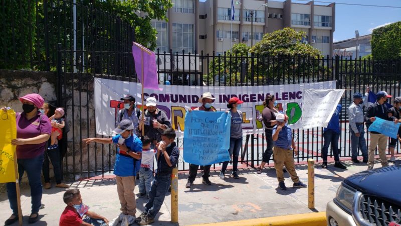 Los pobladores de la comunidad ancestral del pueblo lenca, ubicada en el municipio de Santa Ana, departamento Francisco Morazán, realizaron este lunes un plantón frente a la Corte Suprema de Justicia (CSJ) para exigir detener el arbitrario desalojo.