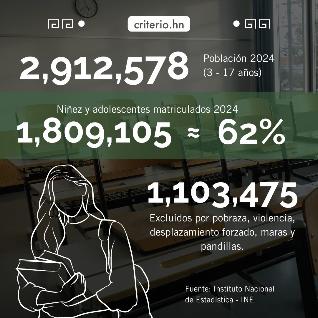 Tegucigalpa. – Se estima que en Honduras al menos 1.2 millones de niñas, niños y jóvenes están excluidos del sistema educativo, una cifra alarmante tomando en consideración que hay una población de casi tres millones de personas en edades que oscilan entre 3 y 17 años.