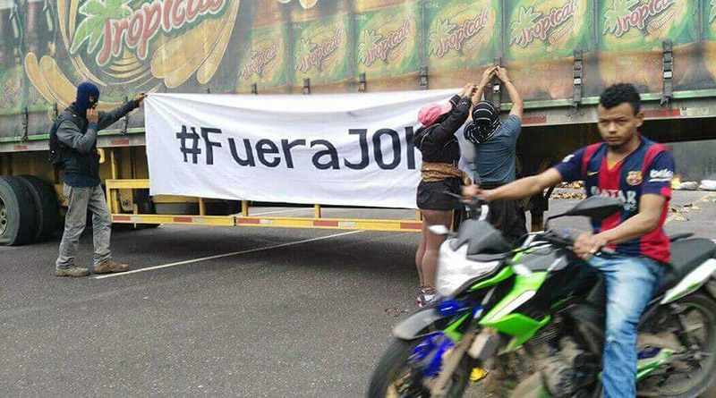 El pueblo hondureño, que rechaza el fraude electoral del pasado 26 de noviembre sale a las calles y carreteras a gritar su consigna “Fuera Joh” y “Joh es pa´ fuera que vas”, enfrentándose a los policías y militares que desde ayer en horas de la tarde y noche militarizaron las zonas donde hay mayor representación del pueblo en resistencia.