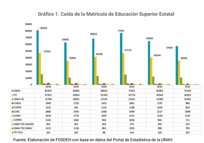 La salida de hondureños del país ha sido notoria, incluso ha quedado en evidencia en la caída de la matrícula educativa a nivel medio y superior. Para el caso, el informe refiere que la baja se ha identificado en más de cinco mil centros educativos públicos y privados lo que aducen que se debería a que los hondureños están optando por migrar.