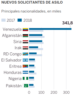 De acuerdo a los datos de la ACNUR durante el último año, Honduras se encuentra entre los diez países a nivel global con más solicitudes de asilo. En América Latina la lista la encabeza Venezuela, seguido por El Salvador y Honduras.