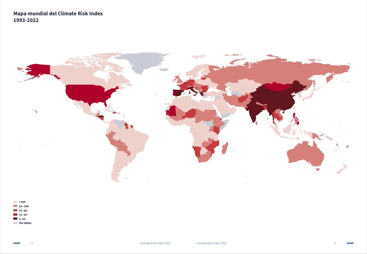 Entre 1993 y 2022, el Índice de Riesgo Climático (IRC) –publicado en febrero de 2025— revela que Dominica, China y Honduras ocuparon los primeros lugares internacionales como los países más golpeados por los impactos de fenómenos meteorológicos extremos.