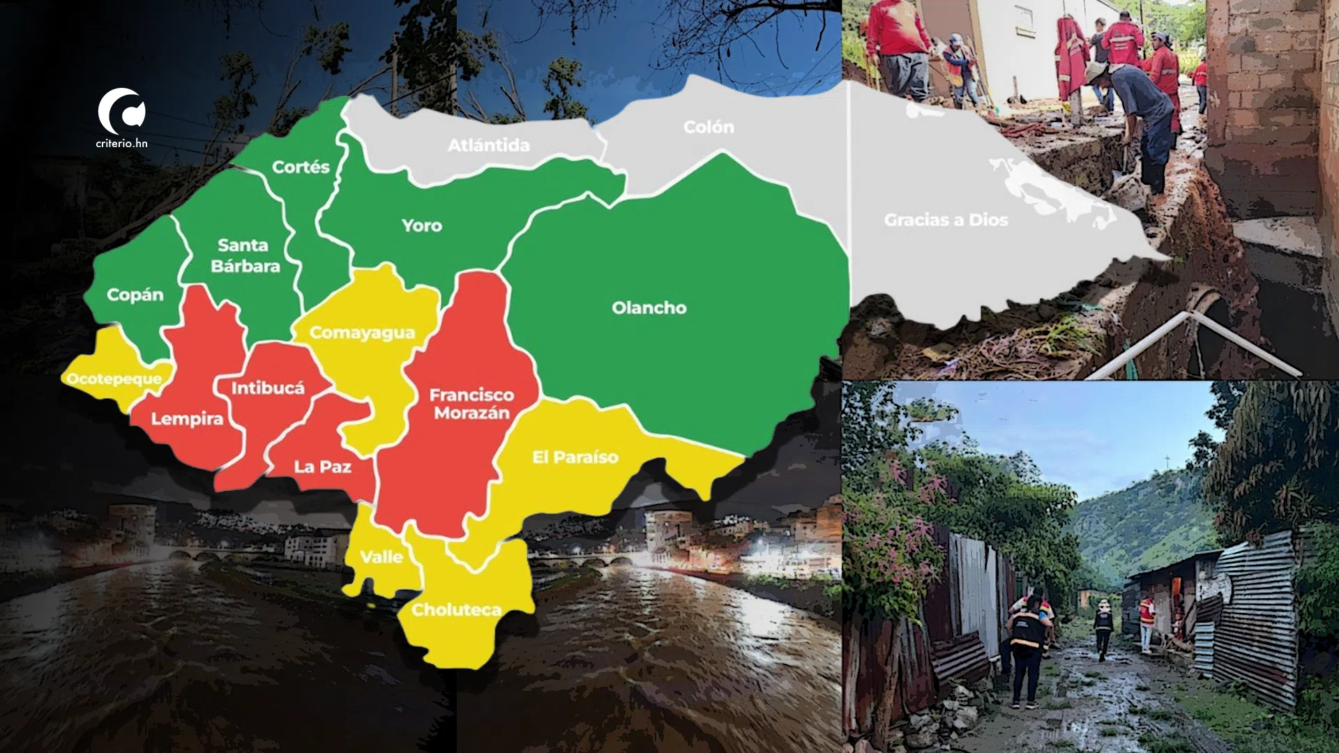 De igual manera, se mantienen en Alerta Amarilla los departamentos de El Paraíso, Choluteca, Valle, Comayagua y Ocotepeque. El resto del territorio (Copán, Yoro, Santa Bárbara, Cortés y Olancho) continúa bajo Alerta Verde.