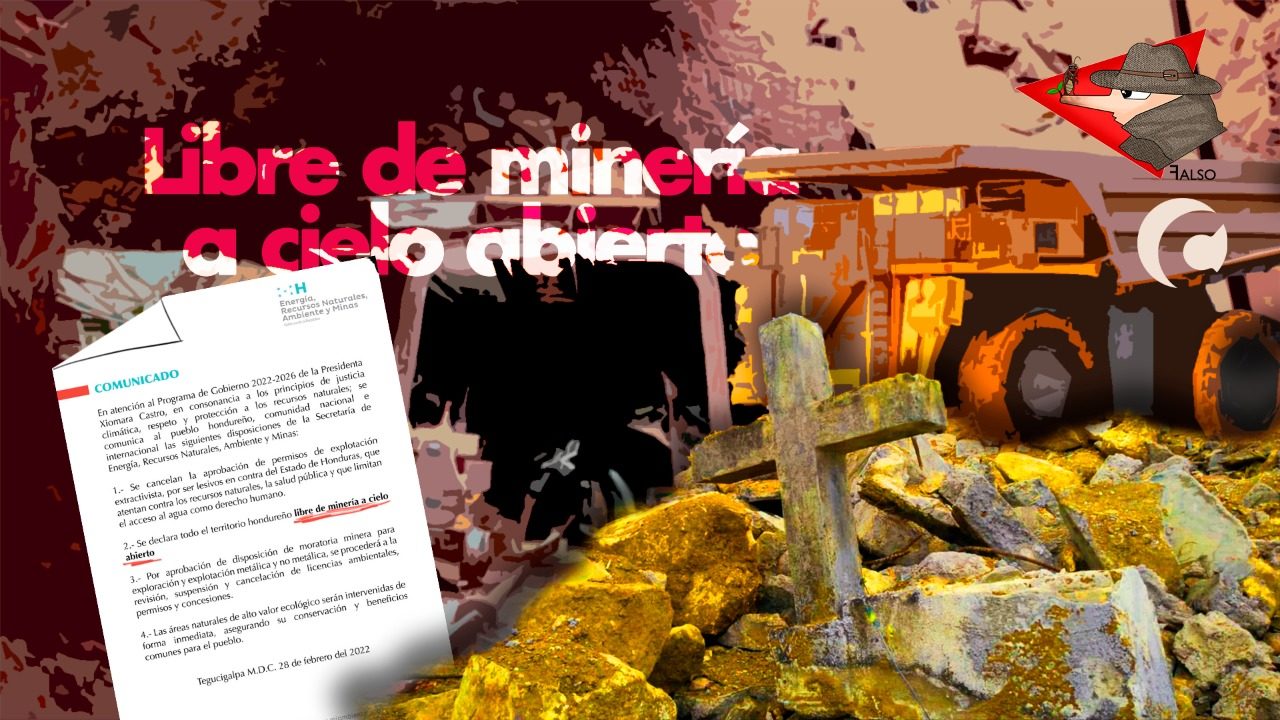 Por todo lo anterior, podemos concluir que es falso que Honduras sea un país libre de minería, por el contrario, el gobierno de Castro ni siquiera convirtió en ley el comunicado que exhibió Mi Ambiente y a raíz de esto las medidas coercitivas que violentan y vulneran los derechos de las comunidades se incrementaron.