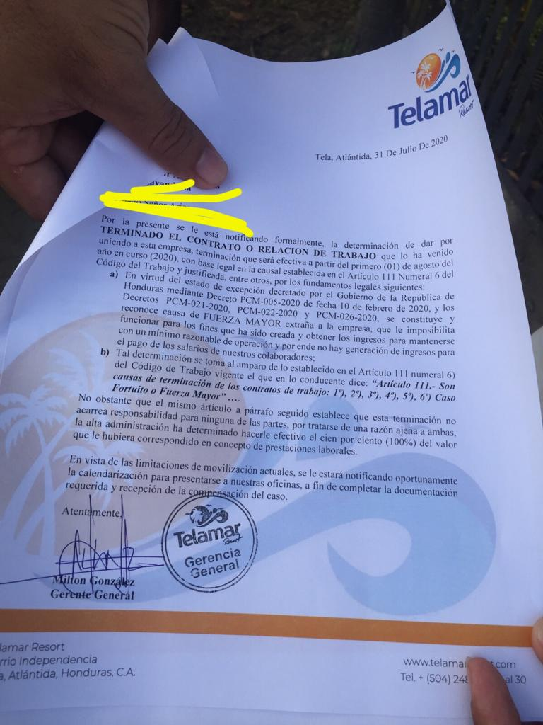Con casi idéntica redacción, los dos comunicados achacaron a “la difícil situación generada por el impacto del COVID-19” el cierre de operaciones y la separación de de más de 200 colaboradores solo en Tela y otro similar número en Tegucigalpa.