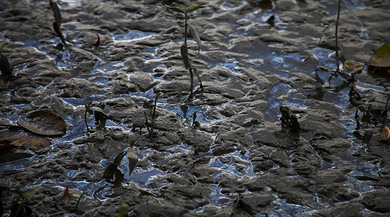 El ambientalista Osmán Orellana (26 años), Yanet Alvarado (34) y Guillermo Garay (36), a su llegada a la aldea Cola de Mico. Para llegar hay que atravesar un crique de 800 metros de longitud, que atraviesa el manglar y conecta la laguna de Los Micos con la reserva forestal Blanca Jeannete Kawas, en el municipio de Tela, Atlántida, Honduras./ Foto El Faro: Víctor Peña