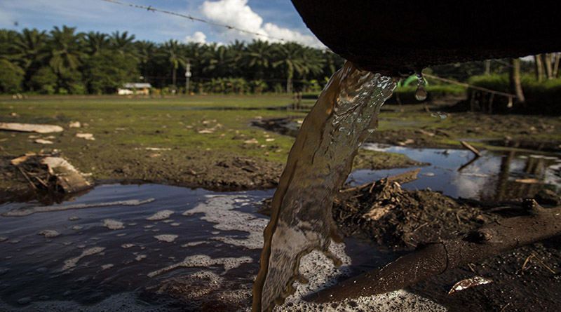 Quinel por donde corren las aguas risiduales de la fabrica de extracción de aceite, CAICESA, cerca de la comunidad de Pagoales, en el municipio de San Francisco, departamento de Atlántida, Honduras. La empresa CAICESA pertene a Grupo Jaremar, empresa que controla la cuarta parte de la producción de palma en Honduras./ Foto El Faro: Víctor Peña
