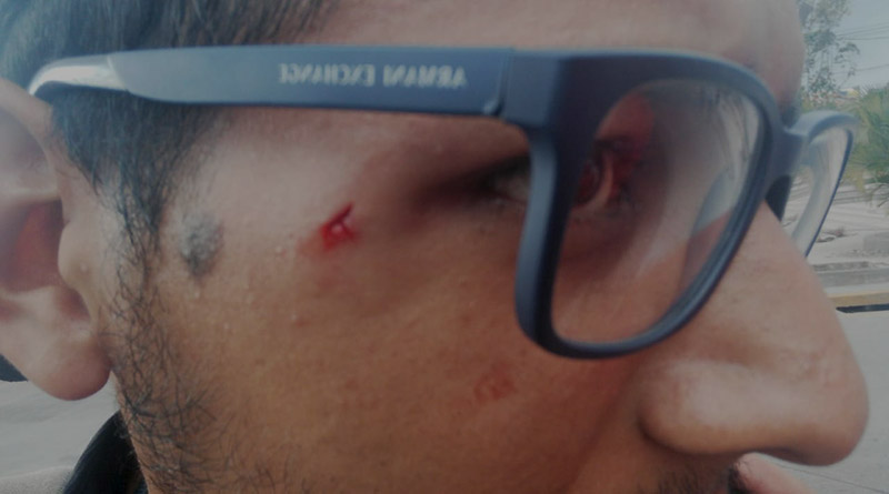Los uniformados también agredieron a un defensor del Observatorio Ecuménico Internacional de Derechos Humanos (OEIDH), Francisco López cuando pretendía salvaguardar los derechos de los estudiantes que estaban siendo agredidos por la policía y quiso salvar a la comunicadora.