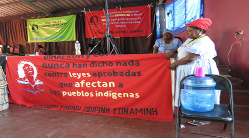 «Nos reunimos para analizar y discutir el tema de la Consulta previa, libre e informada en nuestros territorios. También para definir un posicionamiento firme ante la ley inconsulta que el gobierno está tratando de aprobar con el apoyo del PNUD», dijo Miriam Miranda, coordinadora de la Organización Fraternal Negra Hondureña (Ofraneh).