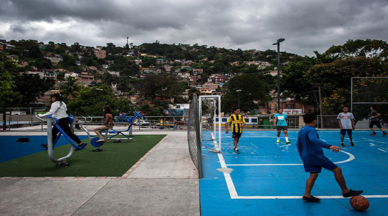 Como parte de su lucha contra del crimen, Hernández han construido parques que son vigilados por la policía militar. CreditDaniele Volpe para The New York Times