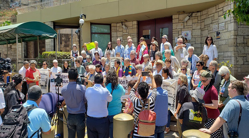 Estamos aquí para llamar a los Estados Unidos para que pare el envío de dinero para la militarización, para armas y para la policía: Rabina, Lynn Gottlieb.