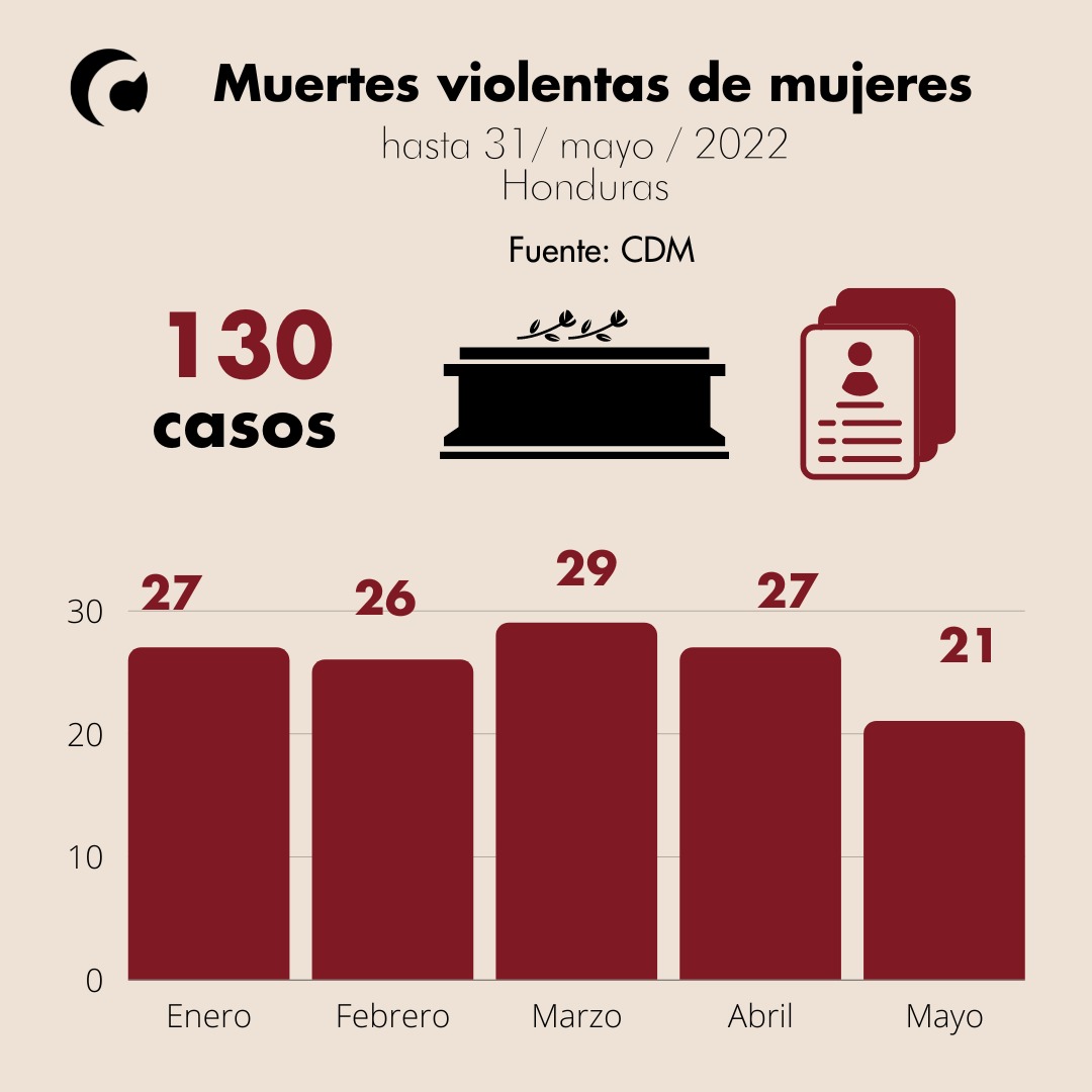 Hasta el 31 de mayo de 2022 más de 130 mujeres han perdido la vida de manera violenta en Honduras, según el monitoreo de medios de comunicación impresos y digitales del Centro de Derechos de Mujeres (CDM).