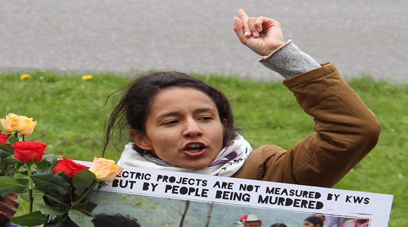 Nosotros sabemos que lo que está hoy en disputa en el mundo son los bienes comunes de la naturaleza, porque es de ahí de donde se va a sacar energía, es el nuevo negocio. Entendiendo eso, quienes hacemos defensa de los territorios ancestrales –muchas veces son los pueblos indígenas–, pues nos encontramos en una situación bastante complicada. Por un lado se está hablando de la defensa de los derechos humanos y, por otro, se está promoviendo la generación de energías e incentivando a las empresas que nacionalmente están vinculadas a los grupos oligárquicos en nuestro país. Eso da como resultado un gran clima de permisibilidad para cometer crímenes, para que también la industria extractiva y energética se instale a costa de lo que sea.