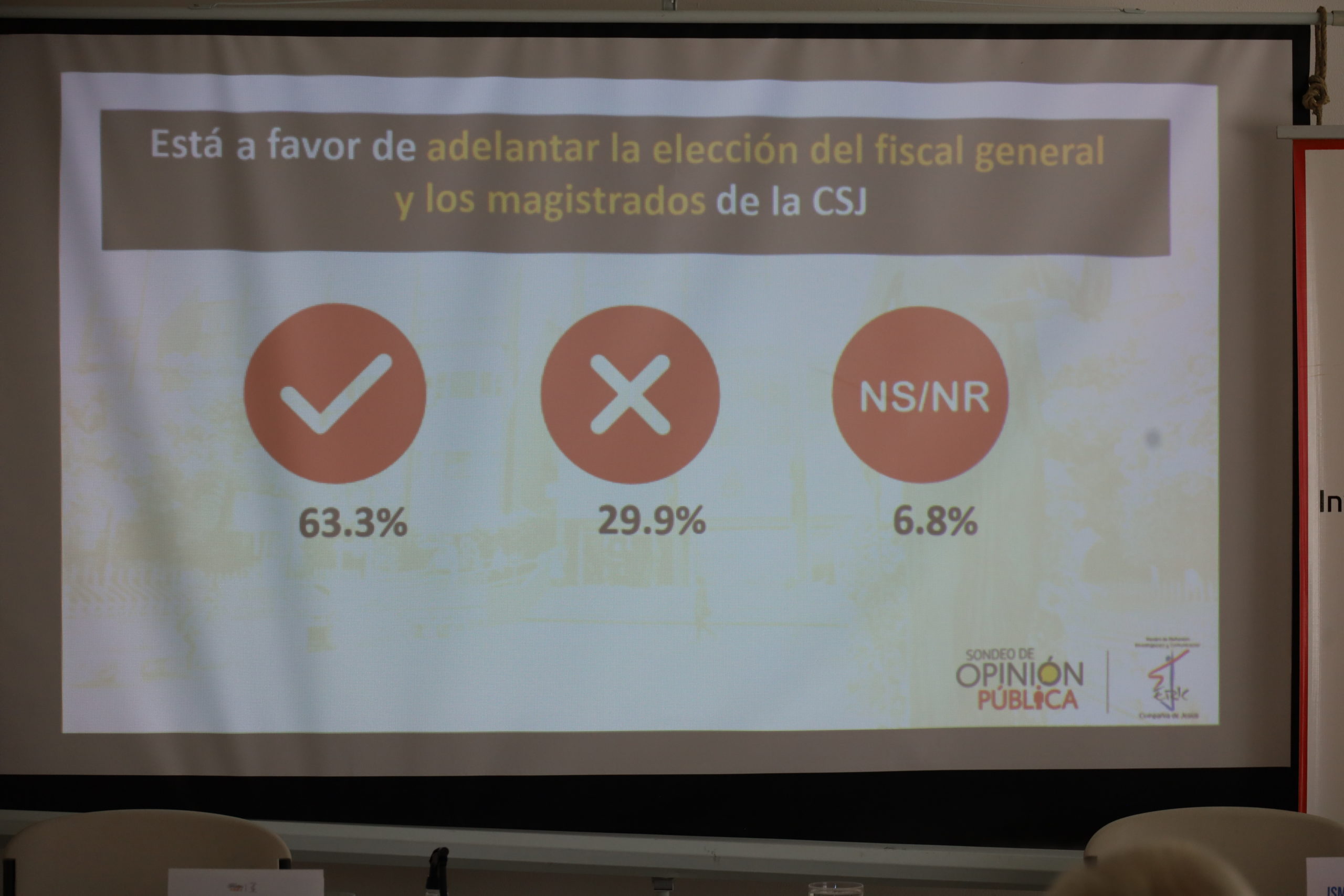 Ante la posibilidad que se adelante la elección de los nuevos magistrados de la Corte Suprema y del fiscal general, el 63,3% está a favor y el 29,9% en contra.