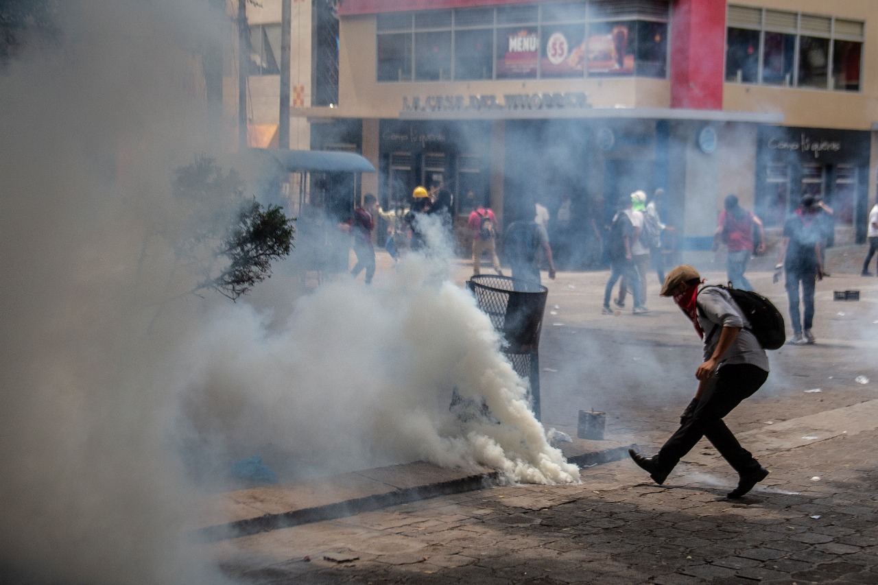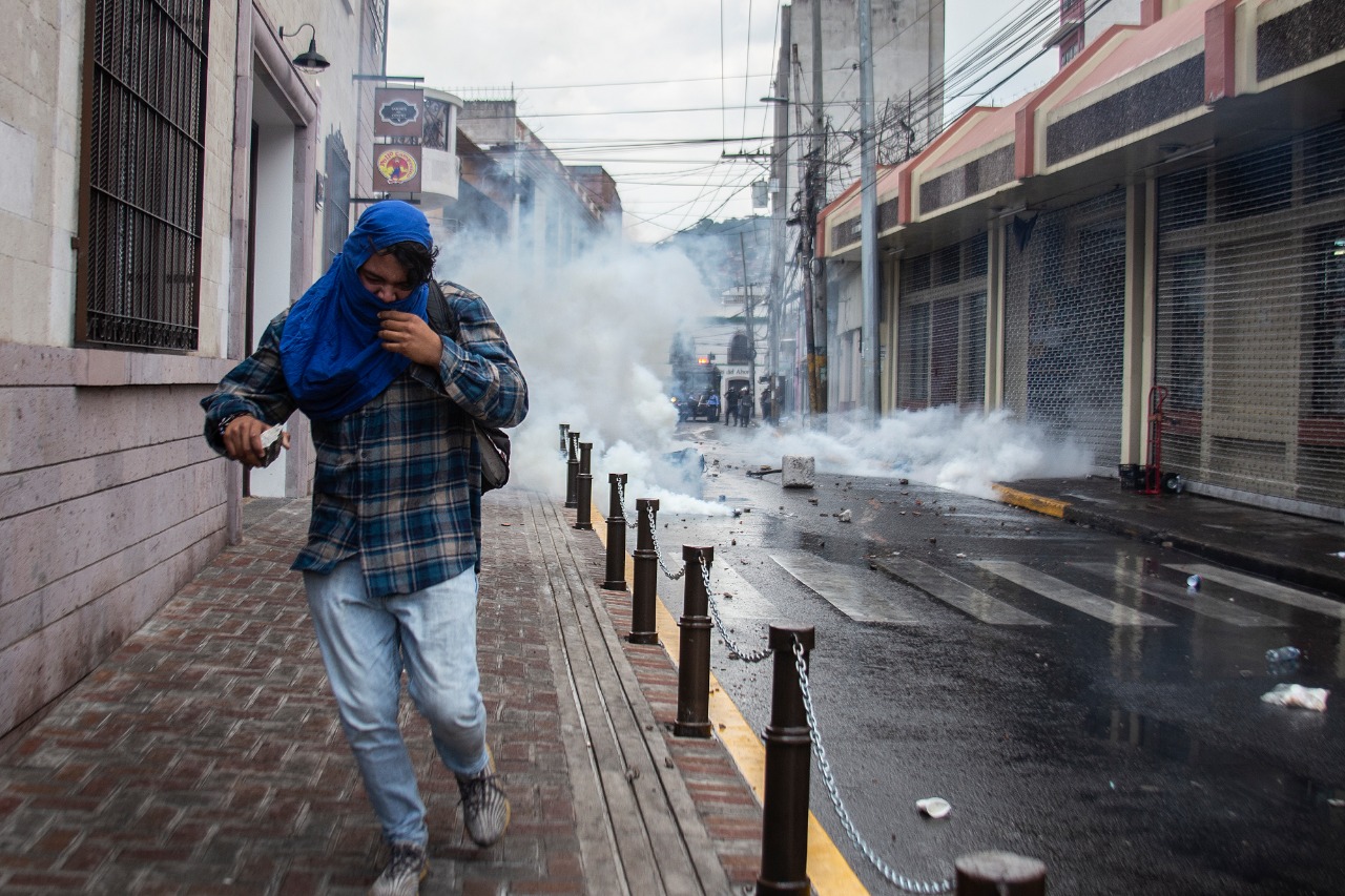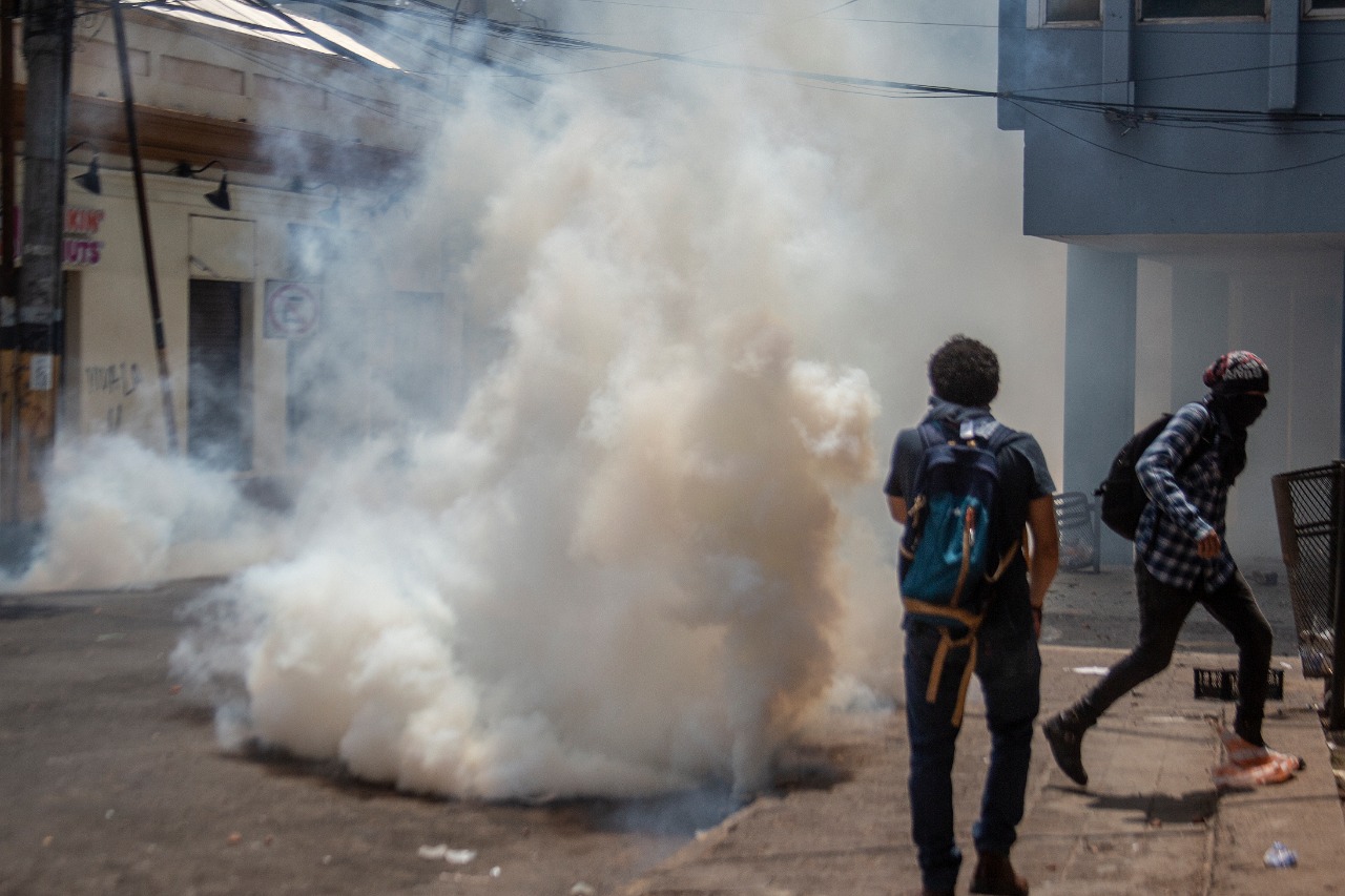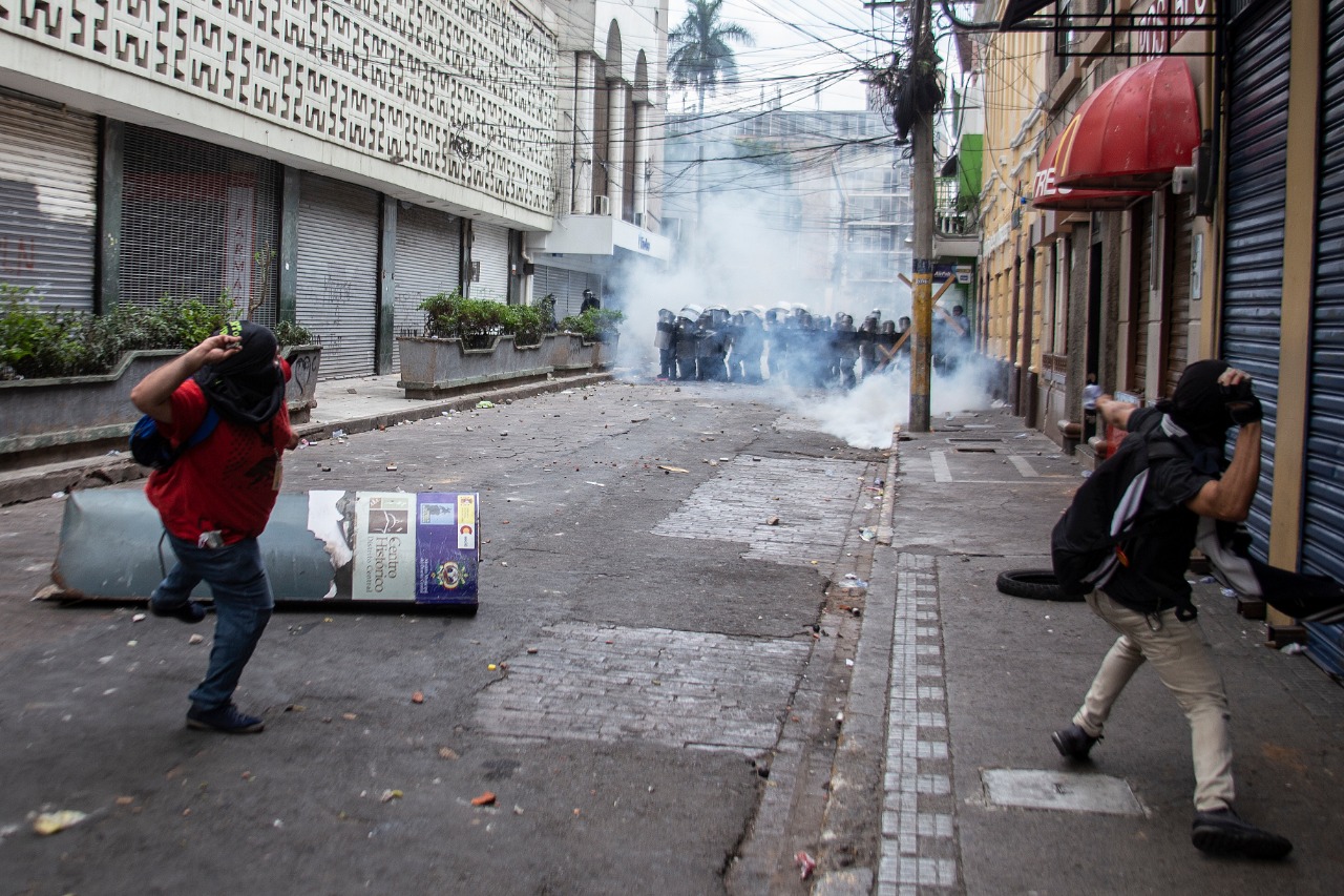 Tegucigalpa.-El lente del fotoperiodista, Paul Carbajal, plasmó los momentos álgidos de la protesta de hoy en Tegucigalpa por parte de los docentes, médicos, personal de salud, estudiantes universitarios y de secundaria y de población en general, contra la Ley de Reestructuración y Transformación del Sistema de Salud y Educación.