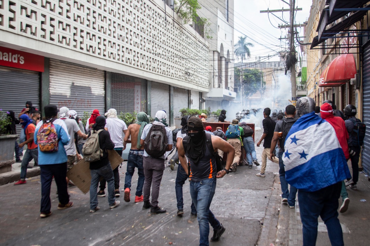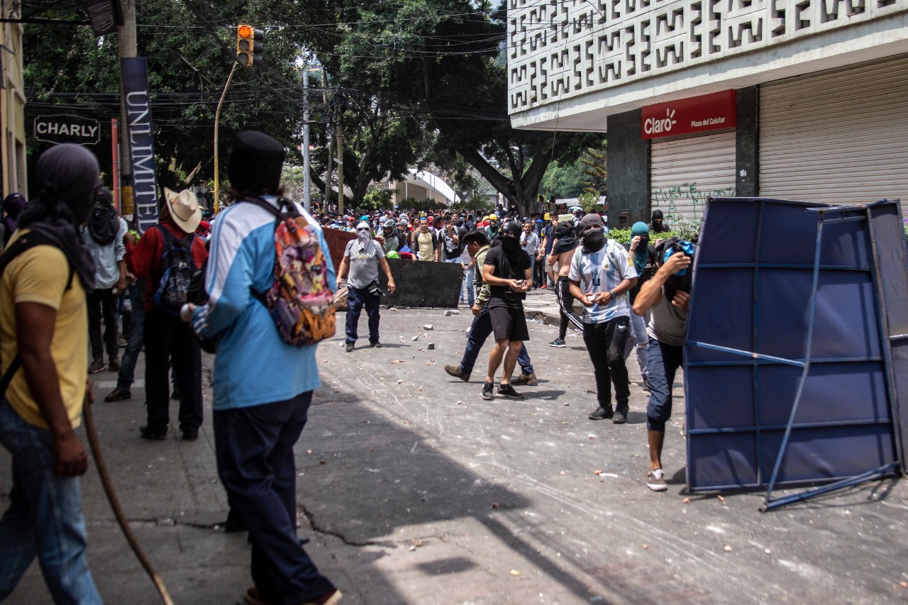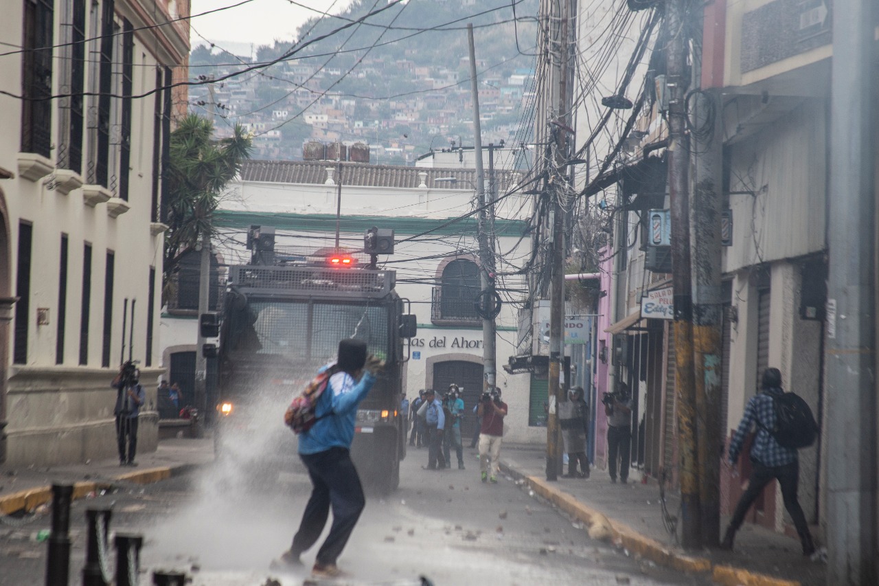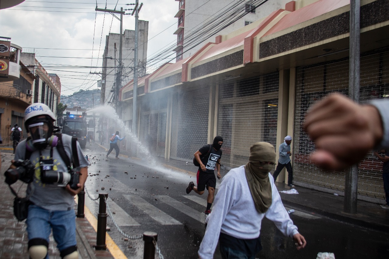 Tegucigalpa.-El lente del fotoperiodista, Paul Carbajal, plasmó los momentos álgidos de la protesta de hoy en Tegucigalpa por parte de los docentes, médicos, personal de salud, estudiantes universitarios y de secundaria y de población en general, contra la Ley de Reestructuración y Transformación del Sistema de Salud y Educación.