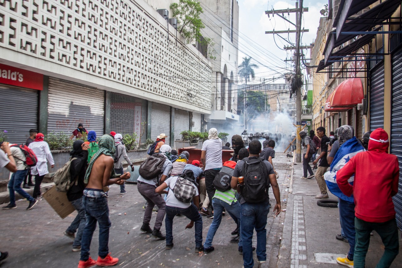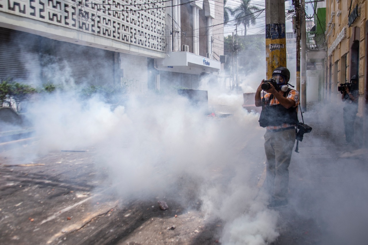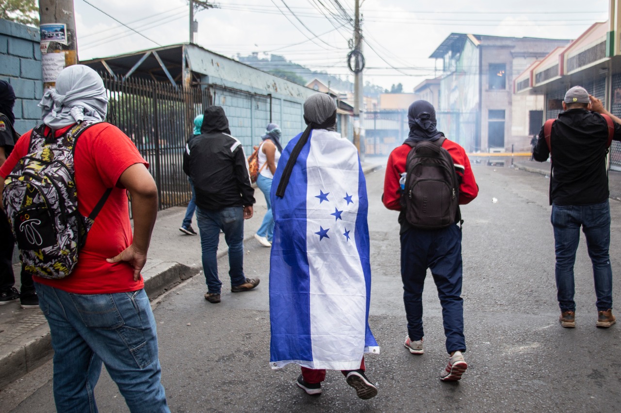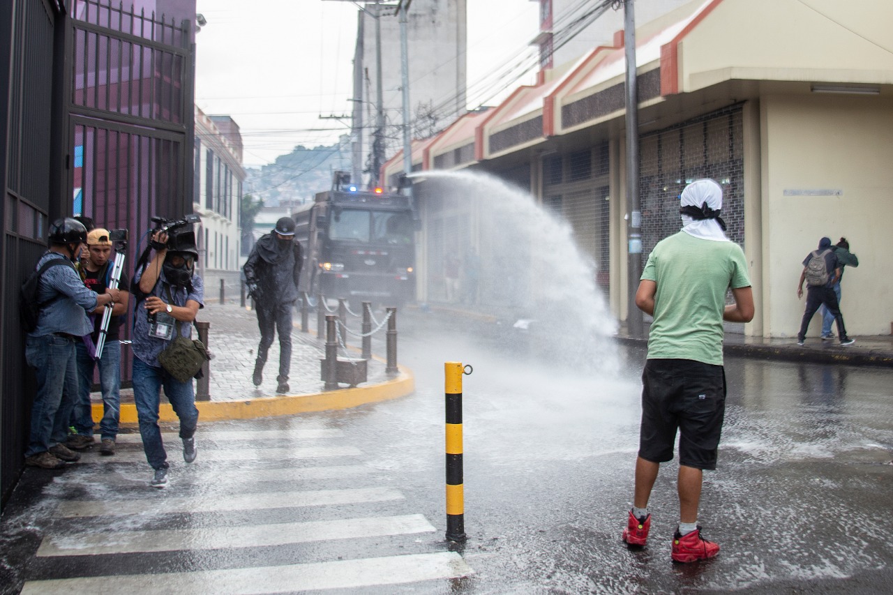 Tegucigalpa.-El lente del fotoperiodista, Paul Carbajal, plasmó los momentos álgidos de la protesta de hoy en Tegucigalpa por parte de los docentes, médicos, personal de salud, estudiantes universitarios y de secundaria y de población en general, contra la Ley de Reestructuración y Transformación del Sistema de Salud y Educación.