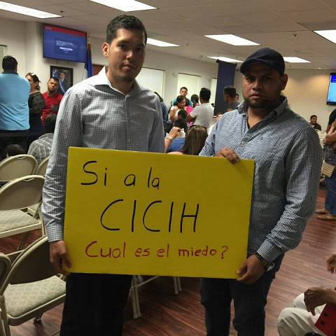 Lester Rápalo, dirigente de los Indignados en Miami se presentó al consulado y leyó un comunicado y su sorpresa fue que la mayoría de los hondureños desconocen que es la CICIH.