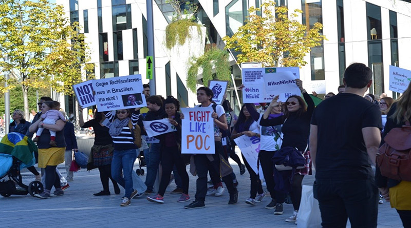 Desde el pasado 29 de septiembre del presente año, en la ciudad de Duesseldorf se esta produciedo demostraciones en contra del candidato Jair Bolsonaro. En la prostesta se pide la no elección del extremista de derecha en Brasil. Las demostraciones están llegando en toda Alemania, por la lucha de una Brasil libre que lucha contra el fascismo.