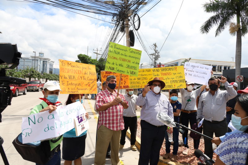 “La Alcaldía Municipal del Distrito Central hizo un convenio con Banco Ficohsa para que este banco maneje el sistema del agua, sin darle el traspaso el SANAA, a la municipalidad o sea el alcalde firmó un convenio por 30 años el concesionamiento del agua, violentando leyes exactamente lo que hicieron con San Pedro Sula con la compañía italiana Aguas de San Pedro.