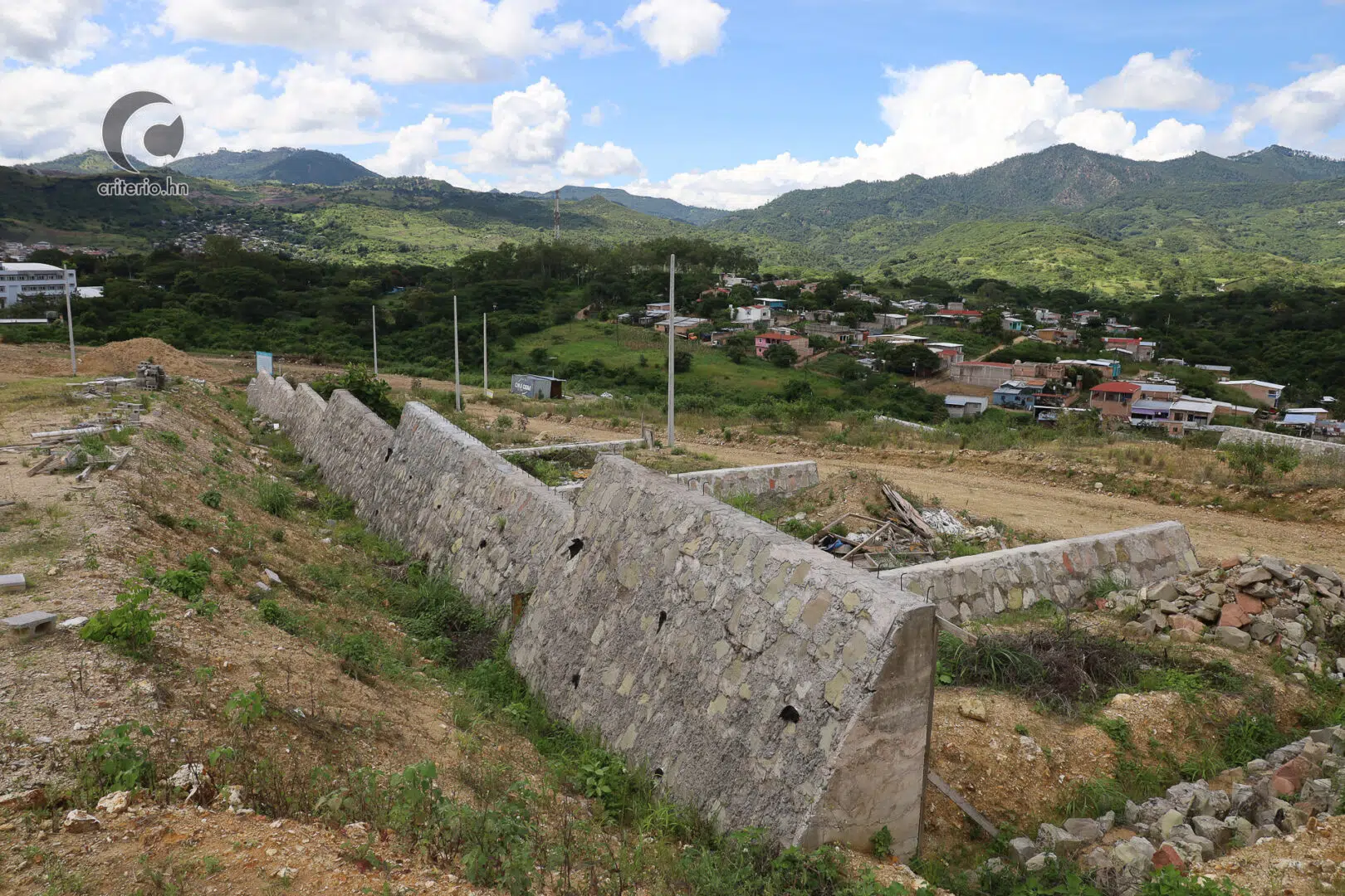 Durante una visita realizada este viernes por Criterio.hn, se constató que el proyecto luce abandonado: solo dos casas modelo están terminadas, varios muros de contención quedaron a medio construir y unas 20 viviendas presentan únicamente paredes levantadas. A los costados, maleza crecida y dos maquinarias inmóviles completan la estampa de una obra detenida prevista para construirse en dos etapas.