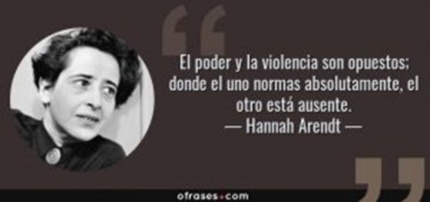 Otro aspecto importante en el que hace hincapié Arendt es en el mal uso que se hace de los conceptos, incluso en las ciencias políticas. Poder, potencia, fuerza, autoridad y violencia son solo algunos de los conceptos más sobresalientes que son utilizados de manera poco diferenciada y que tienen implicaciones negativas a la hora de realizar un análisis, sea este coyuntural o estructural. Para Arendt “Poder corresponde a la capacidad humana, no simplemente para actuar, sino para actuar concertadamente. Potencia, por su parte, corresponde a la naturaleza del grupo y constituye su poder para hacer frente a la independencia, propiedad de la potencia individual. La fuerza corresponde a la energía liberada por los movimientos físicos o sociales. La autoridad corresponde al indiscutible reconocimiento por aquellos a quienes se les pide obedecer; no precisa ni de la coacción ni de la persuasión. La violencia se distingue por su carácter instrumental y por la capacidad de multiplicar la potencia humana” (Arendt 2005). En resumen, el poder representa la esencia de todos los gobiernos mientras que la violencia por ser instrumento, no puede ser esencia.