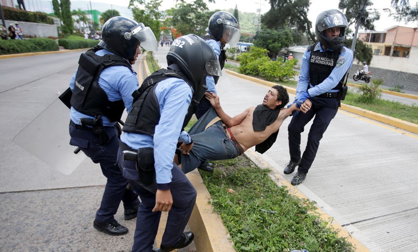 Policías detienen a un manifestante en Tegucigalpa, Honduras, 4 de junio de 2019. / Jorge Cabrera / Reuters