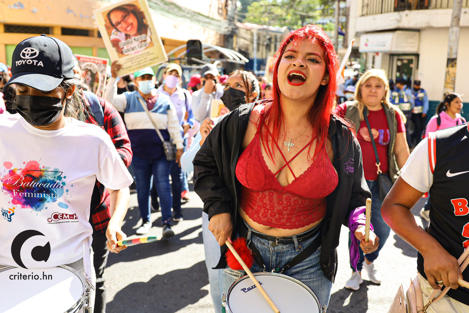 Tegucigalpa. – ¡Alerta, alerta, alerta que camina la lucha feminista por América Latina! ¡Y ahora que sí nos ven, abajo el patriarcado que va a caer, que va a caer! ¡Arriba el feminismo que va a vencer, que va a vencer! ¡Con las feministas, cuidadito! fueron parte de las consignas que resonaron, al son de la batucada, en la plaza central de Tegucigalpa, las protagonistas, grupos de mujeres exigiendo sus derechos en el marco del Día de la Mujer hondureña.