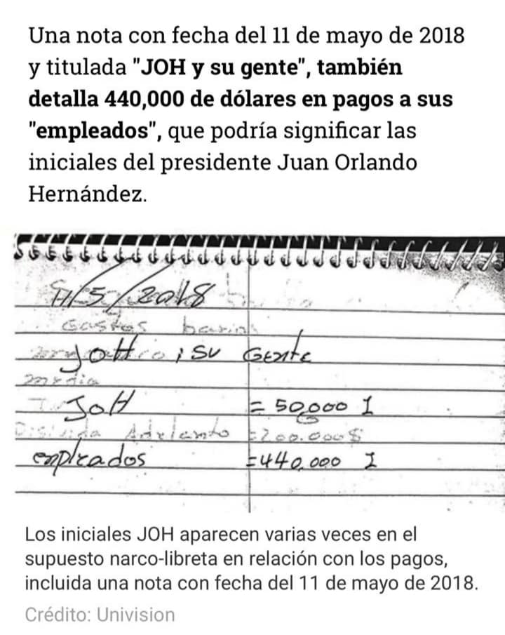 Otro de los detalles importantes es que al parecer dentro de la libreta que poseen los fiscales, también se encuentran las iniciales “JOH” de Juan Orlando Hernández.
