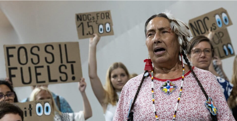 Foto portada:Miembros de la sociedad civil y pueblos indígenas se manifiestan contra los combustibles fósiles en los pasillos de la COP30. Foto: cortesía Photo: © UN Climate Change / Kiara Worth