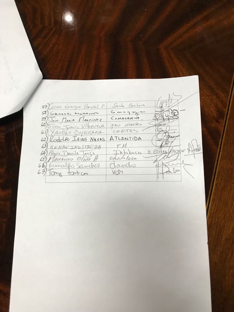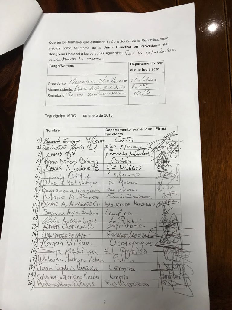 La Junta Directiva provisional, quedó integrada por el nacionalista, Mauricio Oliva; en calidad de presidente; el diputado del Partido Alianza Patriótica, Dennis Castro Bobadilla, vicepresidente y por el también nacionalista, Tomás Zambrano, que asumió como secretario.