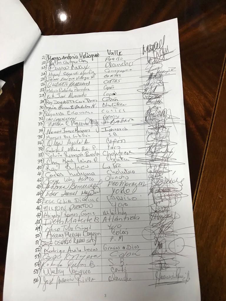 Al ver frustrada su intención los parlamentarios opositores efectuaron una protesta con gritos y rótulos de “fuera JOH”.