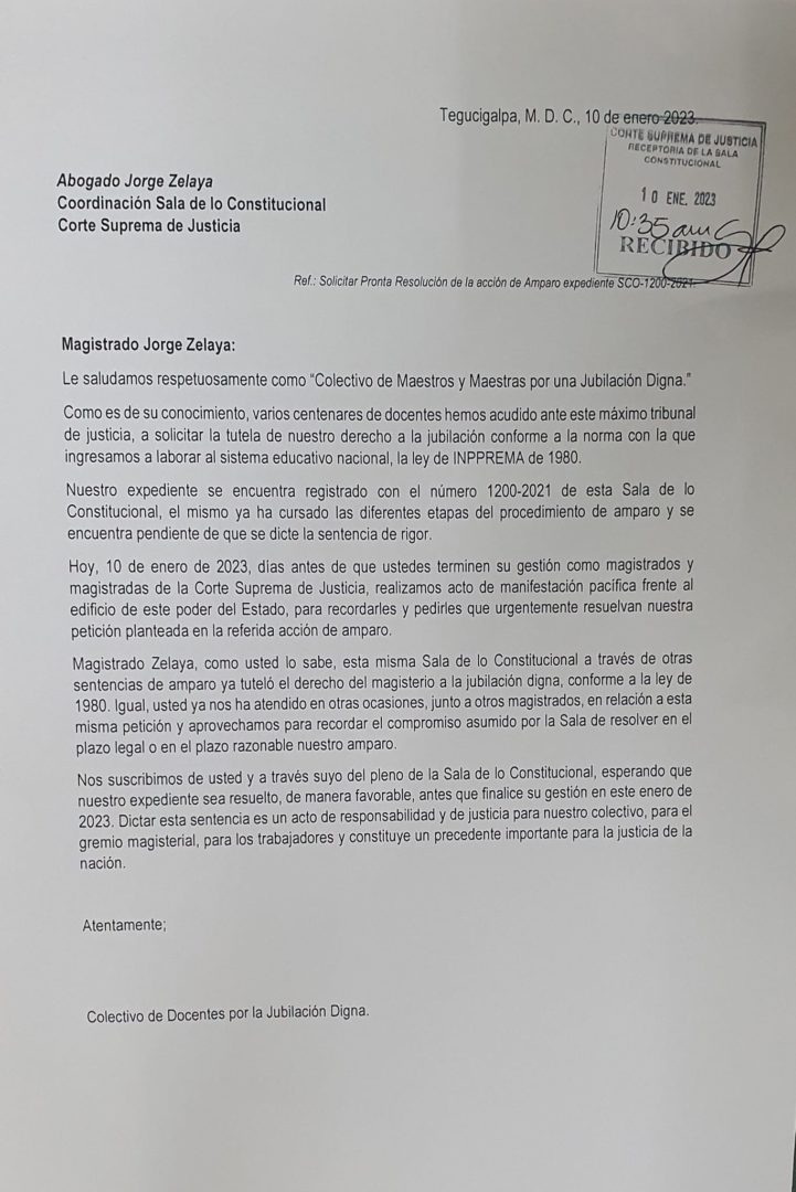 “No vamos a descansar hasta que se resuelva de manera favorable, para los grupos que estamos demandando al INPREMA que se nos jubile con la ley de 1980”, añadió.