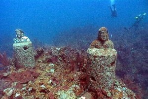 Mayatlantis – French Harbour, RoatánYa con réplicas de tamaño natural o muy cercanas a ella, se encuentra el otro museo submarino de Roatán, justo en Cayo Ezequiel, French Harbour, este museo es exclusivo de motivos mayas a diferencia del de Sandy Bay que incluye el pasado relacionado con los europeos, en este museo no es necesario utilizar equipos de buceo.