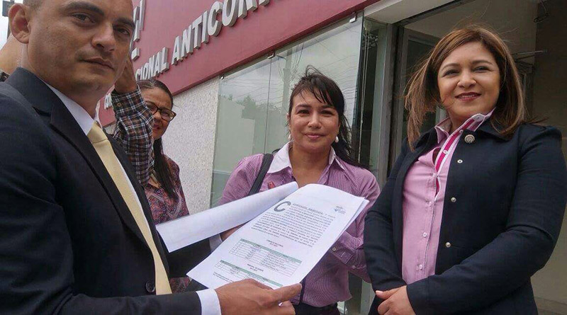 Tegucigalpa.- La candidata presidencial del Partido AntiCorrupción (PAC), Marlene Alvarenga, junto a su apoderado legal Fernando González, presentaron este lunes ante el Consejo Nacional Anticorrupción (CNA), una denuncia para que se investigue a las autoridades del Instituto de la Propiedad (IP), que firmaron la inscripción de nombre y logo de ese partido por parte del expresidente Salvador Nasralla.
