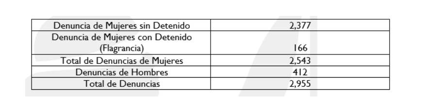 Los datos brindados por el Juzgado contra la Violencia Doméstica de Francisco Morazán, indican que 2,543 de las denuncias interpuestas por violencia doméstica fueron realizadas por mujeres, además 166 de las 2955 se realizaron en flagrancia por lo cual el infractor fue detenido por las autoridades.