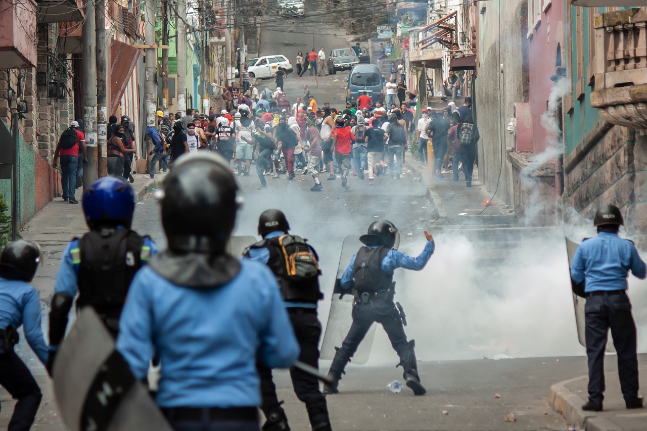 Tegucigalpa, vio a los manifestantes enfrentarse con la policía antidisturbios.