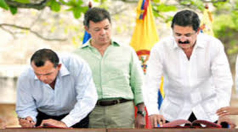 En mayo de 2011, también en esa ciudad histórica, patrimonio de la humanidad de Cartagena de Indias. Junto a Ustedes Señor Presidente Santos, el Presidente Hugo Chávez Frías, representado por el actual Presidente de Venezuela Nicolás Maduro Moros, firmamos con el Presidente Porfirio Lobo Sosa el Acuerdo internacional de Reconciliación Democrática, que en su momento permitió el retorno de Honduras a la OEA, después del fatídico golpe de estado del 28 de junio de 2009.