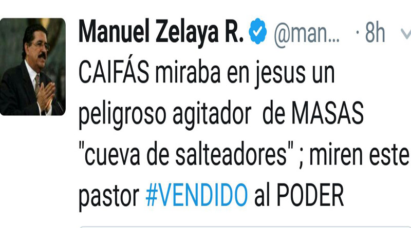 Zelaya Rosales hizo el señalamiento en sus cuentas de redes sociales en respuesta a la acusación que hiciera en su contra Ramírez, quien durante un acto religioso lo culpó de tener pacto con el diablo.