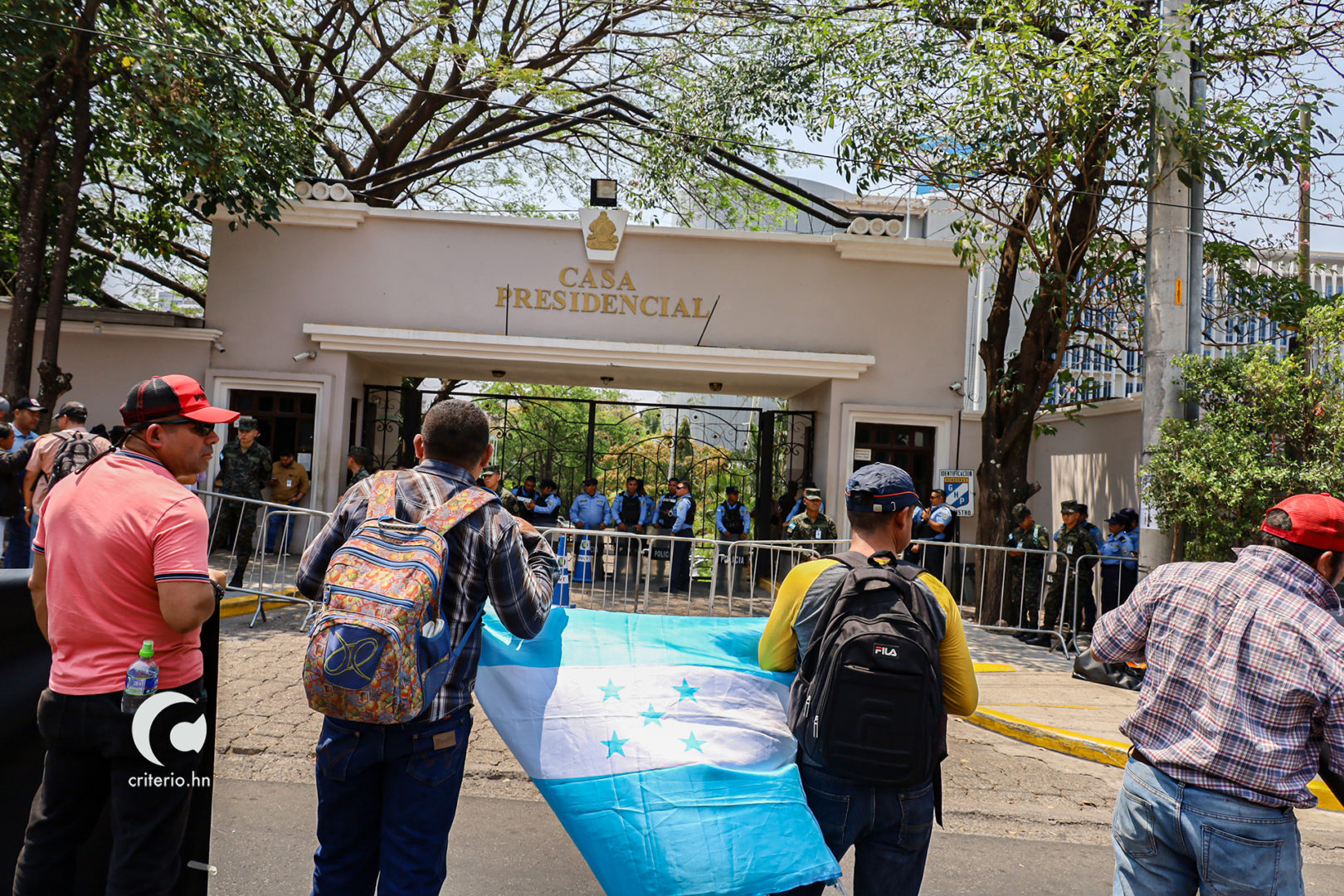 Frente a las instalaciones de Casa Presidencial protestaron varios policías depurados exigiendo su reintegro a las filas de la institución. (Fotografía: Horacio Lorca)