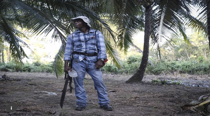 Henry Norales, ingeniero agrícola jefe de OFRANEH, realiza un sondeo de la plantación de coco orgánico