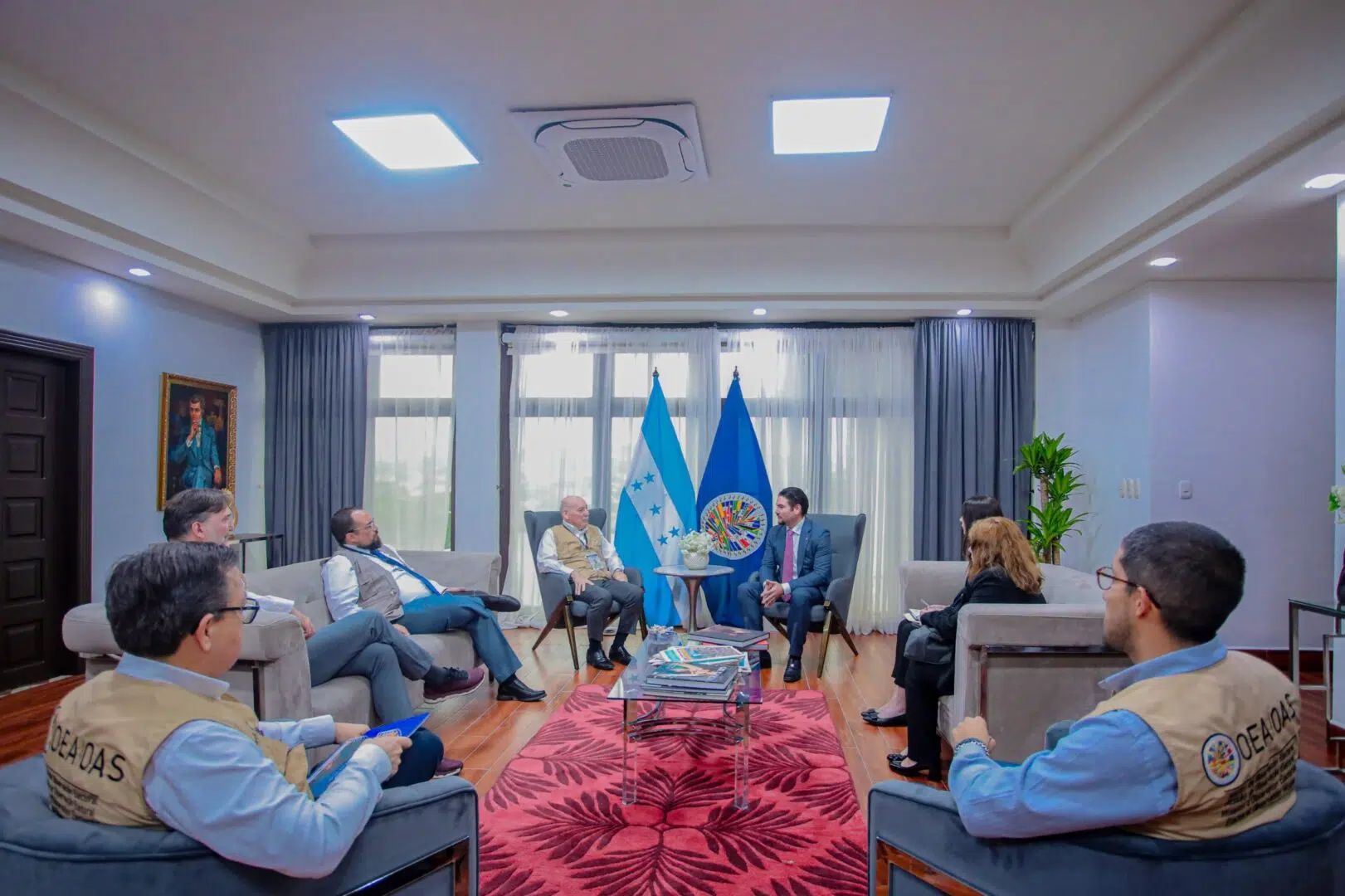 En esta misión preliminar la MOE/OEA se reunió con la presidenta de la República, Xiomara Castro, con el secretario de Relaciones Exteriores y Cooperación Internacional, Javier Bu Soto, miembros del Tribunal de Justicia Electoral, las y el consejero del Consejo Nacional Electoral (CNE).