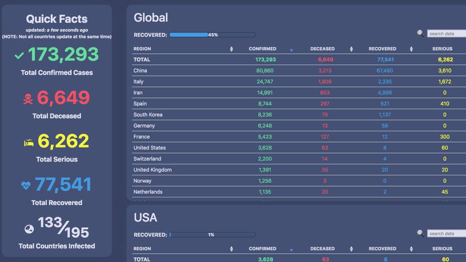Hoy, un resumen extendido sobre el coronavirus a nivel mundial. El número de muertos por la pandemia de coronavirus ha sobrepasado los 6.500, con alrededor de 170.000 casos confirmados en todo el mundo. Al menos 77.000 personas se han recuperado de la enfermedad, aunque algunos informes sugieren que esta ha tenido un impacto duradero en la salud y que la reinfección es posible.