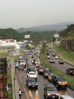 De forma simultánea, los simpatizantes de la bandera azul y la estrella blanca, realizaron similares caravanas en las calles de Comayagua, San Pedro Sula y Puerto Cortés.