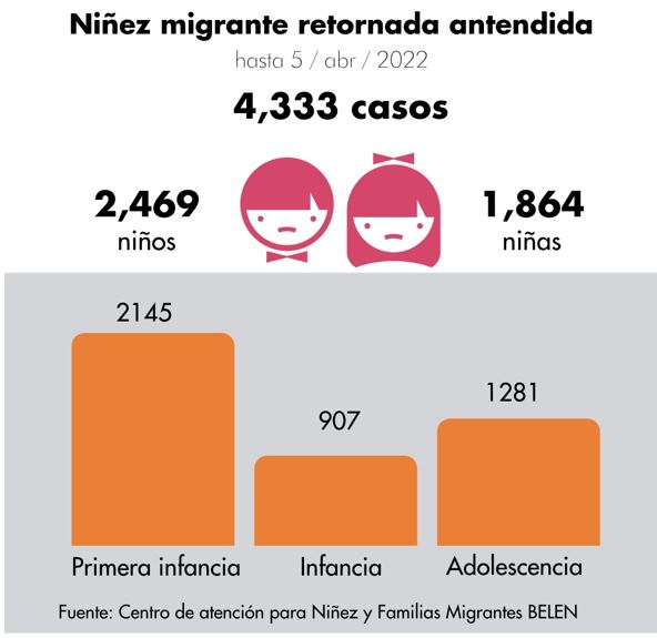 El Coiproden destaca que los datos del Centro de Atención para la Niñez y Familias Migrantes Belén, reveló que más de 4, 000 infantes han sido deportados del 1 de enero al 5 de abril de 2022.