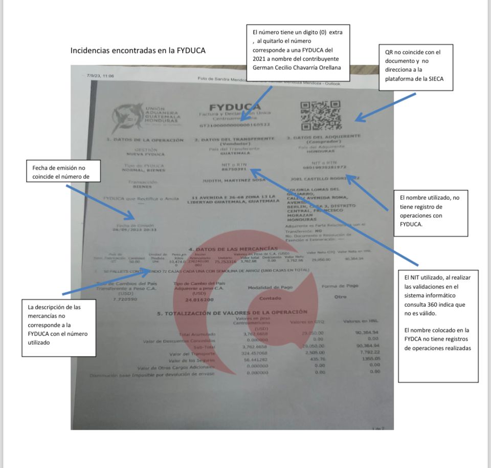 Los contrabandistas utilizan la modalidad de «tránsito» e incluso recurren a la falsificación de documentos aduaneros como la Factura y Declaración Única Centroamericana (FYDUCA) para ingresar mercadería que no cuenta con los controles adecuados al país.