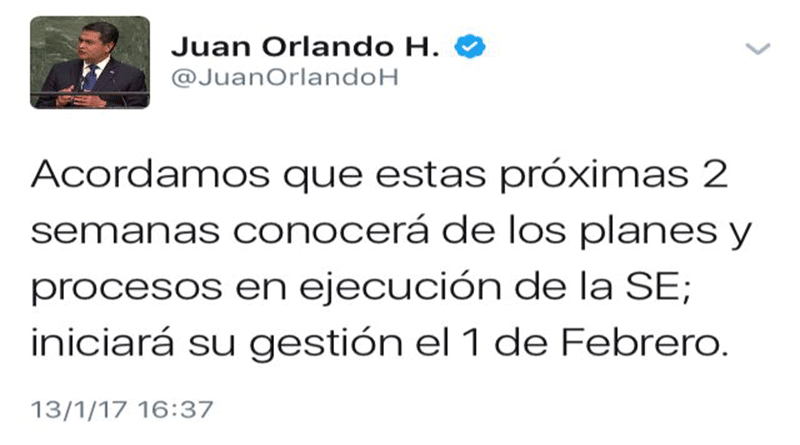 “Acordamos en estas dos próximas semanas conocerá de los planes y procesos en ejecución de la Secretaría de Educación; iniciará su gestión el 1 de febrero”, dice la publicación de la red social.