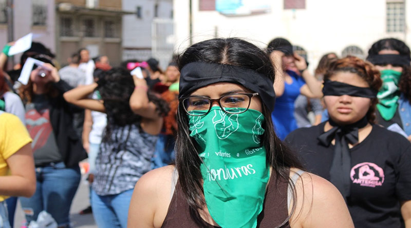 Las hondureñas, en su mayoría jóvenes universitarias, se pusieron pañuelos verdes en sus muñecas y cuello y vendas negras en sus ojos, para replicar las acciones del Colectivo LasTesis de Chile, que se ha viralizado en las redes sociales para hacer conciencia y demandar un cese a la violencia contra las mujeres.