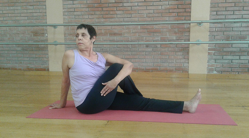 Postura de la media torsión: Estimula el hígado y los riñones, favorece la digestión, estira los hombros, las caderas y el cuello, Se energiza la columna vertebral. Alivia el dolor menstrual, la fatiga, la ciática y dolor de espalda.