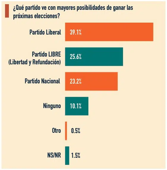 El 39.1% de los encuestados considera que el Partido Liberal tiene la posibilidad de ganar los próximos comicios, superando al oficialista partido Libertar y Red fundación (Libre), que alcanza un 25.6%. Esta tendencia reflejaría un panorama político nacional diferente, donde el desencanto con la administración actual y la búsqueda de alternativas parecen inclinar la balanza a favor de los liberales.